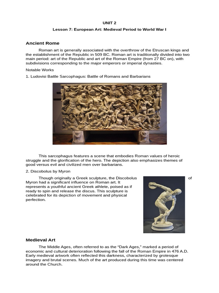 the establishment of the Republic in 509 BC. Roman art is traditionally divided into two