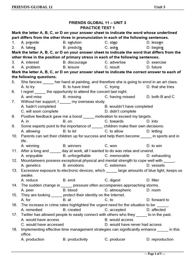 FRIENDS GLOBAL 11 – UNIT 3