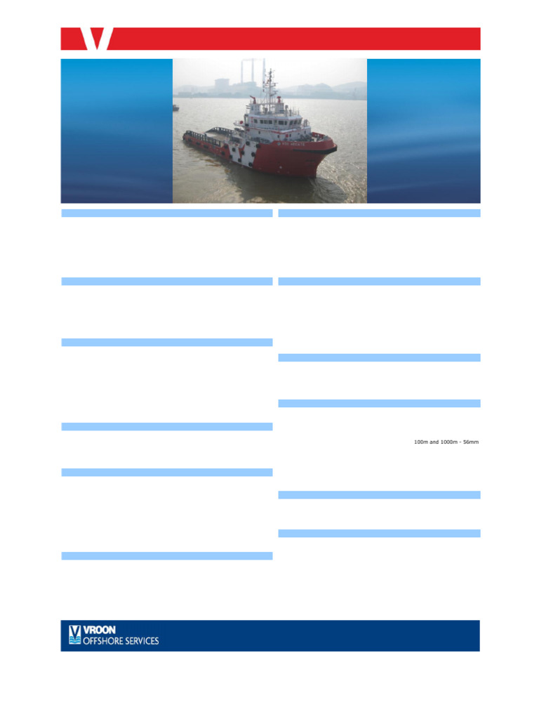 Fuel Consumption at Service Speed 10 m3 per day @ 10 knots Anchor Handling Wire and Towing Wire 100m and 1000m - 56mm