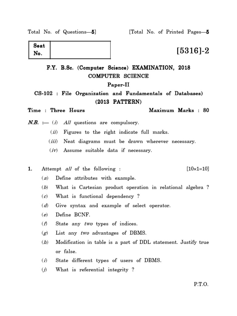 CS-102 : File Organization and Fundamentals of Databases)