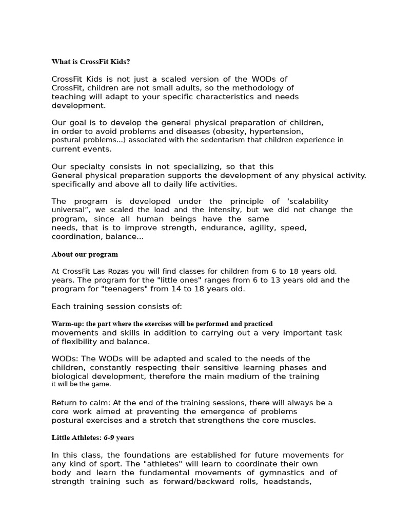 CrossFit, children are not small adults, so the methodology of