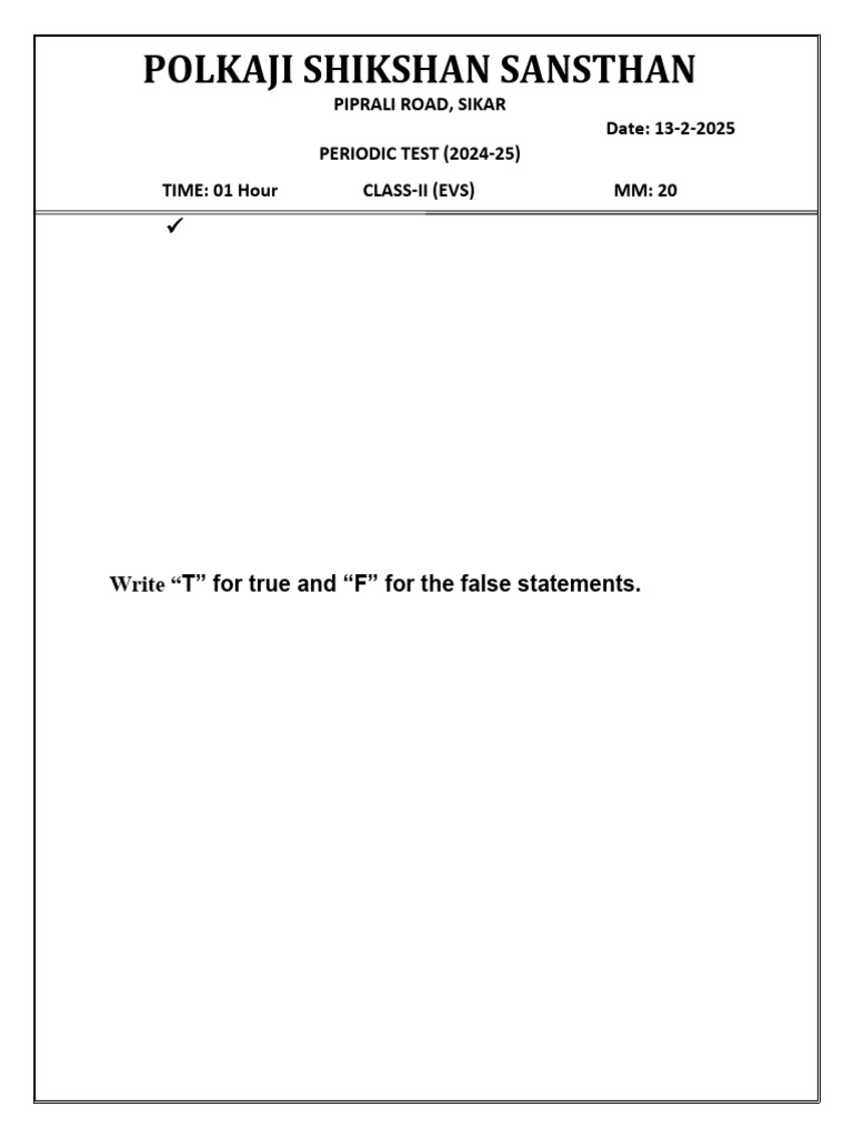 TIME: 01 Hour CLASS-II (EVS) MM: 20