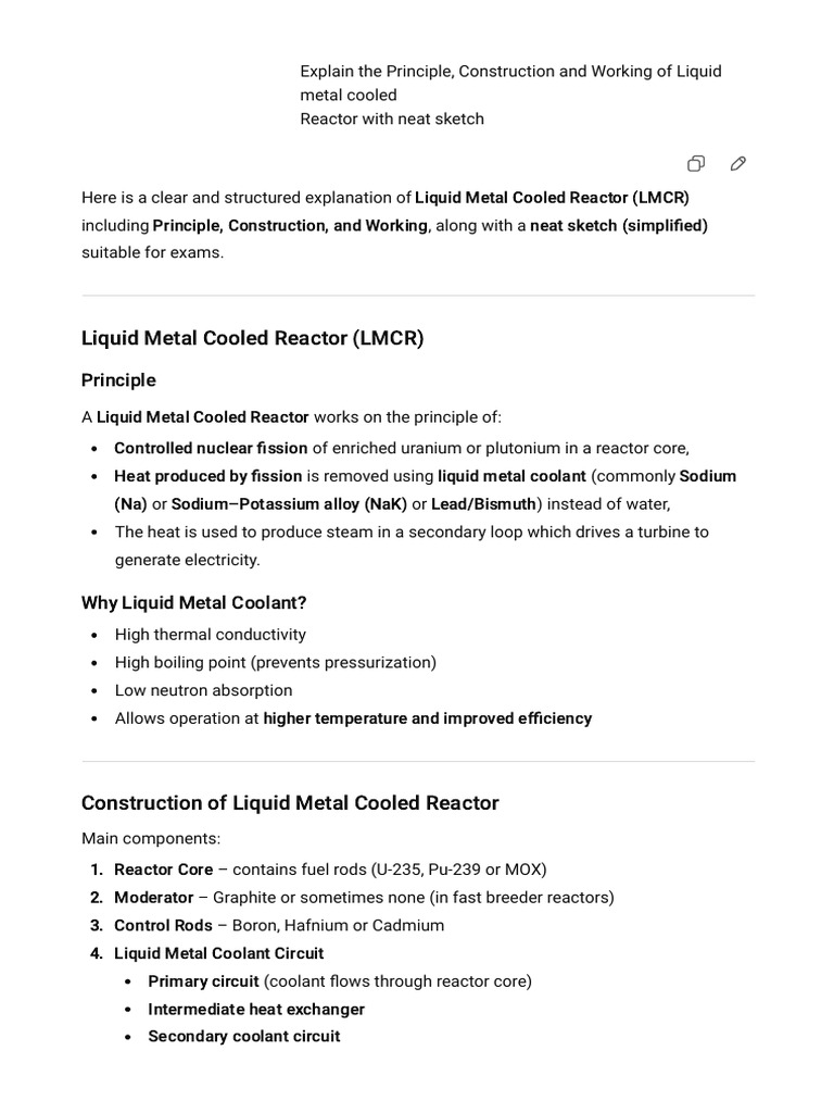 Working of Liquid Metal Cooled Reactor
