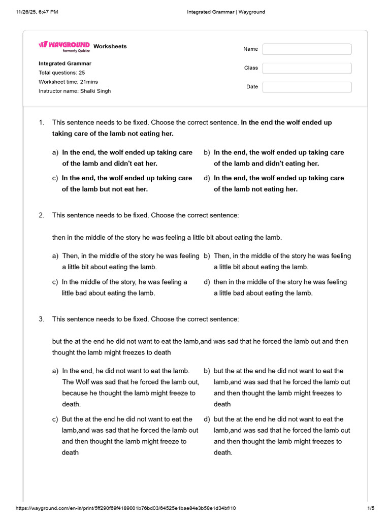 11/26/25, 6:47 PM Integrated Grammar | Wayground