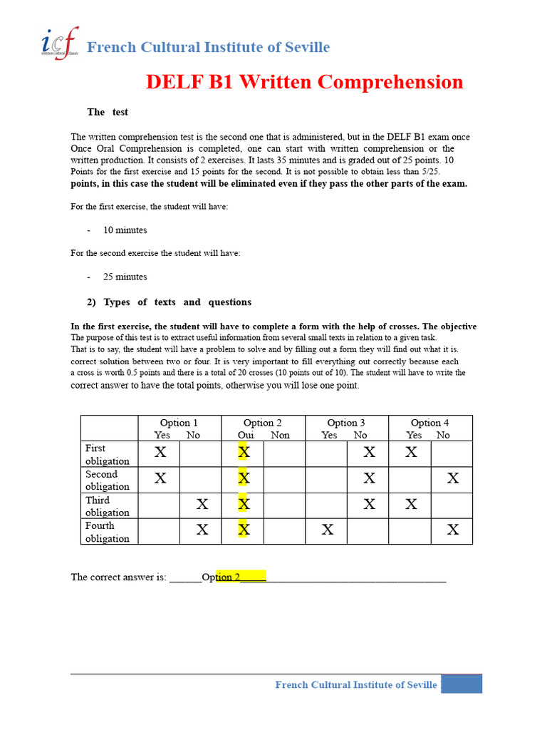The written comprehension test is the second one that is administered, but in the DELF B1 exam once