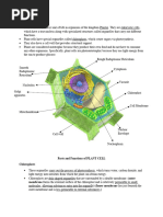 Protoplast- plant cell without the cell wall o Living part of the plant cell Plasma/cell membrane- semi-permeable, lipid bilayer structure o regulates the entry of chemicals/substances in and out of the cell Nucleus- serves as the control system of the cell containing the DNA Cytoplasm- jelly-like substance inside the cell wherein organelles and other parts lie Mitochondria- provides energy (ATP) to the cell Plastids- stores food and pigment o Membrane-bound organelles unique to plants o Classification according to color or content: Leukoplasts colorless, for storage o Amyloplasts - starch o Proteinoplast proteins o Elaioplast fats Chromoplasts pigments (yellow, red, orange); to attract pollinators Chloroplast chlorophyll (chlorenchyma parenchyma cells w/ chlorophyll) Proplasts undifferentiated plastids Large central vacuole- Surrounded by a single membrane tonoplast o contains water, salts, sugar, proteins and minerals o Takes up much of cells interior (90% vol. of mature cell) o Storage of pigments (eg. anthocyanin) and metabolic products o Also stores ergastic substances (salts of organic acids) like crystals o Forms of crystals: Raphide needle-like Druse star or flower- like Cystolith irregular or grape-like Rhombohedron diamond-like Endoplasmic reticulum for lipid synthesis and their transport o Smooth ER o Rough ER with bounded ribosomes responsible for protein synthesis