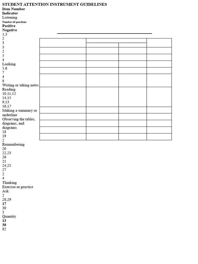 Student Attention Questionnaire