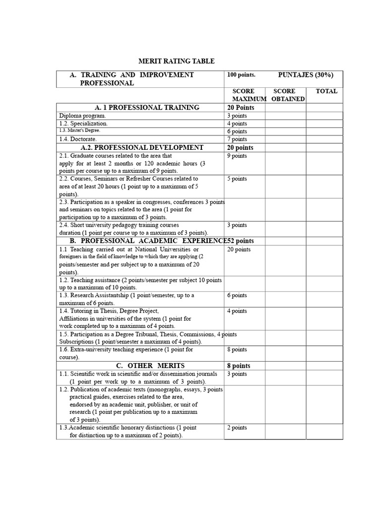 A. TRAINING AND IMPROVEMENT 100 points. PUNTAJES (30%)