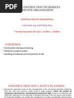 siting for cranes, staging areas, material storage, sanitation/welfare facilities, first aid