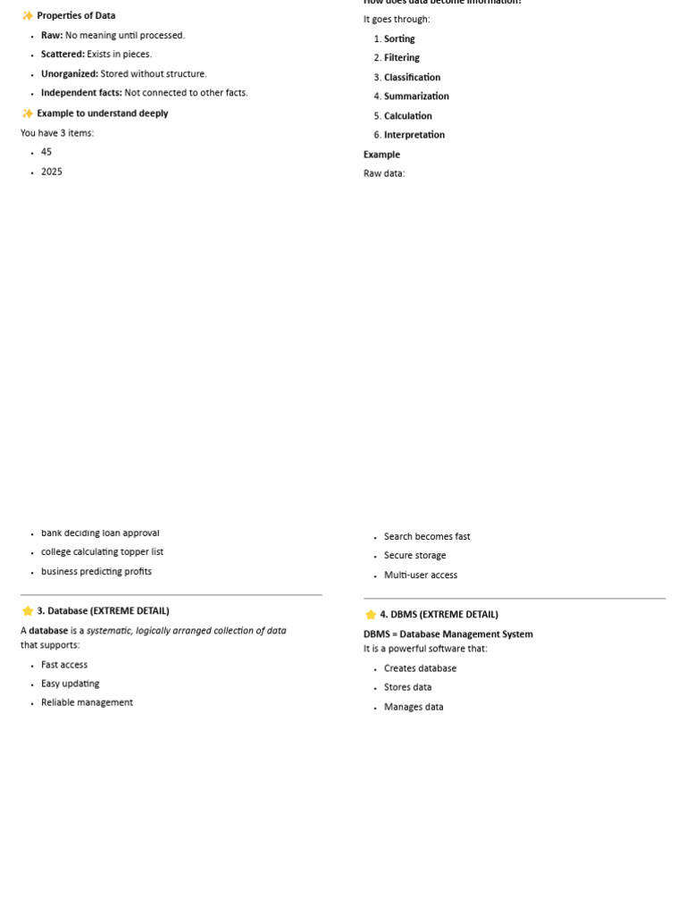 “Data” is raw, unorganized facts that by themselves do not convey any When processed → “Kar k scored 78 marks in year 2025 with grade A.”