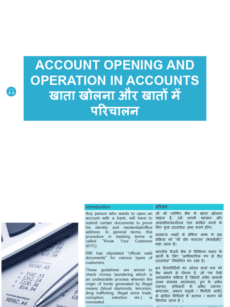 PROCEDURE FOR OPENING AN ACCOUNT खाता खोलने क कायिविध