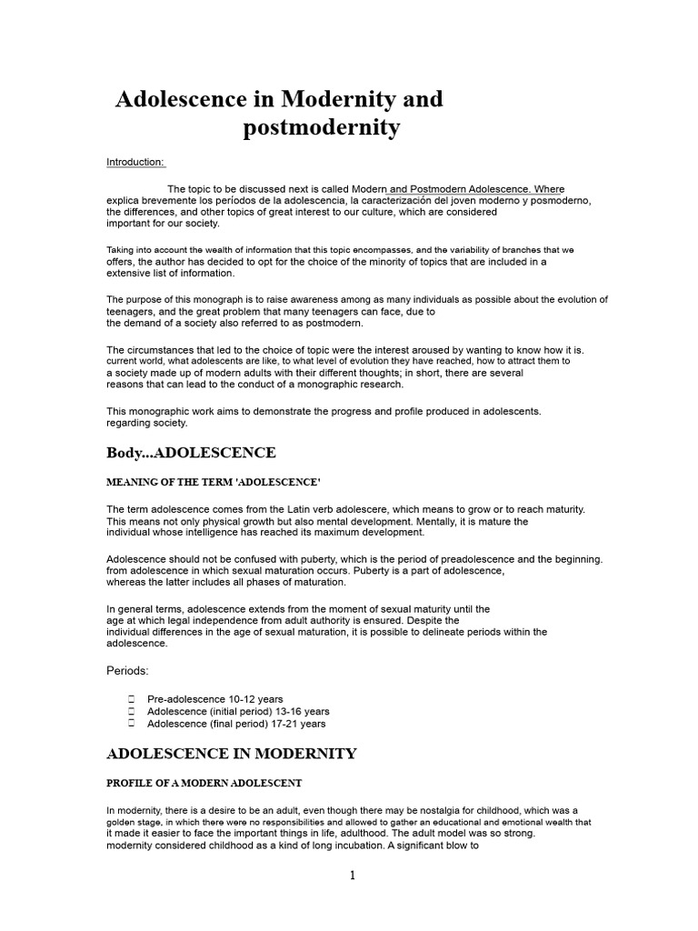 explica brevemente los períodos de la adolescencia, la caracterización del joven moderno y posmoderno,