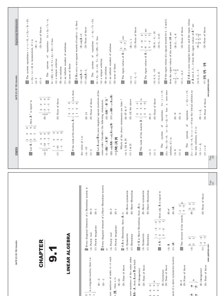 (D) None of these. 26. If A is a nonsingular matrix and the eigen values of A are 2 , 3 , - 3 then the eigen values of A -1 are 1 1 -1 (A) 2 , 3 , - 3 (B) , , 2 3 3 (D) None of these