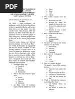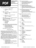Before answering the question, please write down your name. Question number 1-2 will be based on this dialogue Andre : Hi Tika... How was your trip? Tika :(........1......), it was marvelous. Andre : Wow, can you tell me? Tika : Yeah I can tell you later after Im back from the hospital Andre : What?! Hospital?! Who is sick? Tika : My grandfather, he got heart attack last day Andre : (..............), Im really sorry to hear that. May I come with you? Tika : Yeah... come on, we must be hurry. 1. What expression is suitable to fill in bracket number 1? a. I enjoyed it b. Im interested in this matter c. That was terrible d. I know it was great e. Thats not good 2. What expression is suitable to fill in bracket number 2? a. I love your idea b. Oh, God! c. What a nuisance! d. I feel regret of it e. How Wonderful 3. Khalika gets nightmare for two days. The past progressive/ past continuous form of the sentence is.... a. Khalika got nightmare for two days b. Khalika is getting nightmare for today c. Khalika was getting nightmare for two days d. Khalika had gotten nightmare for two days e. Khalika is gotten nightmare for two days Question number 4-8 will be based on this passage THE SMARTEST PARROT Once upon time, a man had a wonderful parrot. There was no other parrot like it. The parrot could say every word, except one word. The parrot would not say the name of the place where it was born. The name of the place was Catano. The man felt excited having the smartest parrot but he could not understand why the parrot would not say Catano. The man tried to teach the bird to say Catano however the bird kept not saying the word. At the first, the man was very nice to the bird but then he got very angry. You stupid bird! pointed the man to the parrot. Why cant you say the word? Say Catano! Or I will kill you the man said angrily. Although he tried hard to teach, the parrot would not say it. Then the man got so angry and shouted to the bird over and over; Say Catano or Ill kill you. The bird kept not to say the word of Catano. One day, after he had been trying so many times to make the bird say Catano, the man really got very angry. He could not bear it. He picked the parrot and threw it into the chicken house. There were four