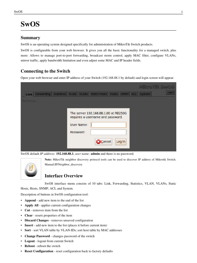 SwOS Source: http://wiki.mikrotik.com/index.php?oldid=22901 Contributors: Kirshteins, Marisb, Normis