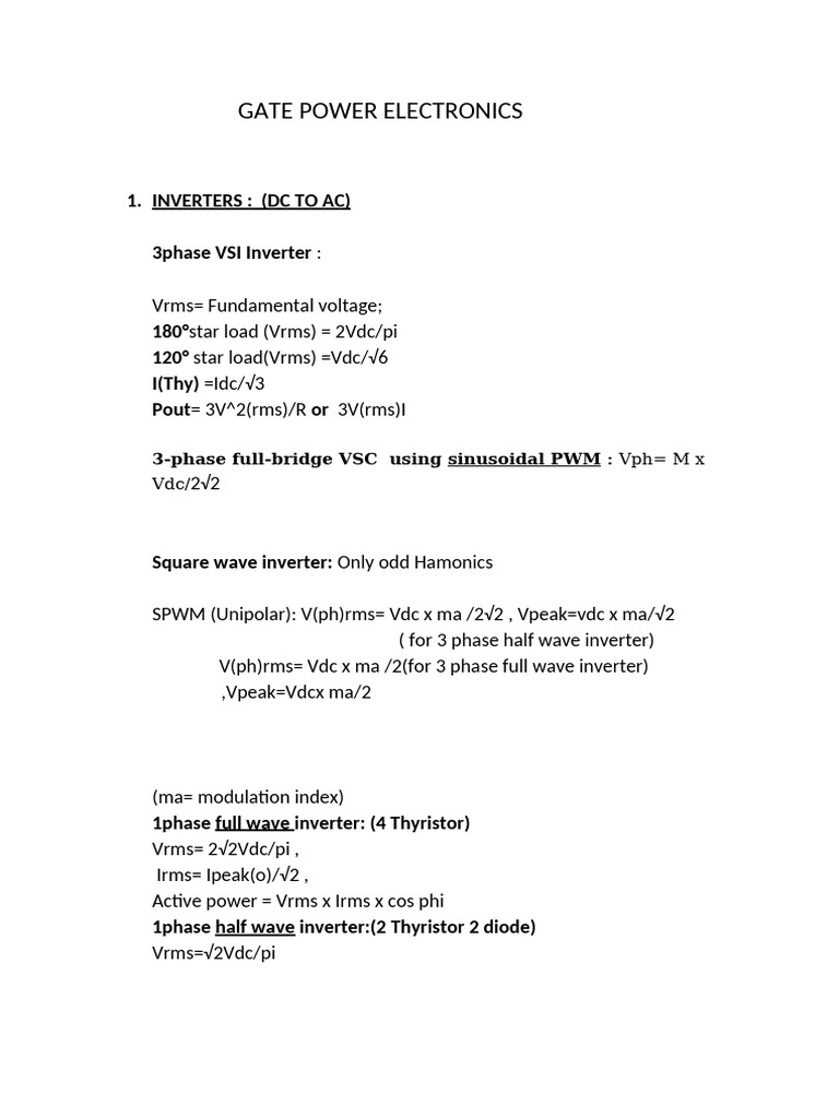SPWM (Unipolar): V(ph)rms= Vdc x ma /2√2 , Vpeak=vdc x ma/√2