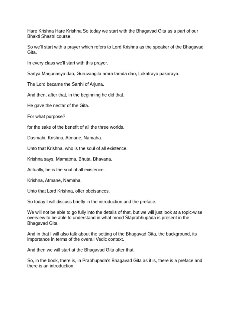 So, in the book, there is, in Prabhupada's Bhagavad Gita as it is, there is a preface and