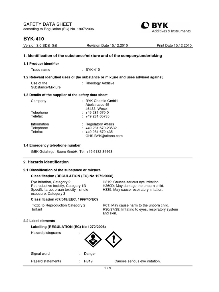 Version 3.0 SDB_GB Revision Date 15.12.2010 Print Date 15.12.2010