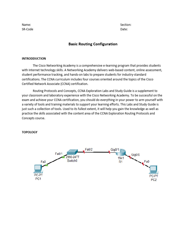 • Cable a network according to the Topology Diagram.