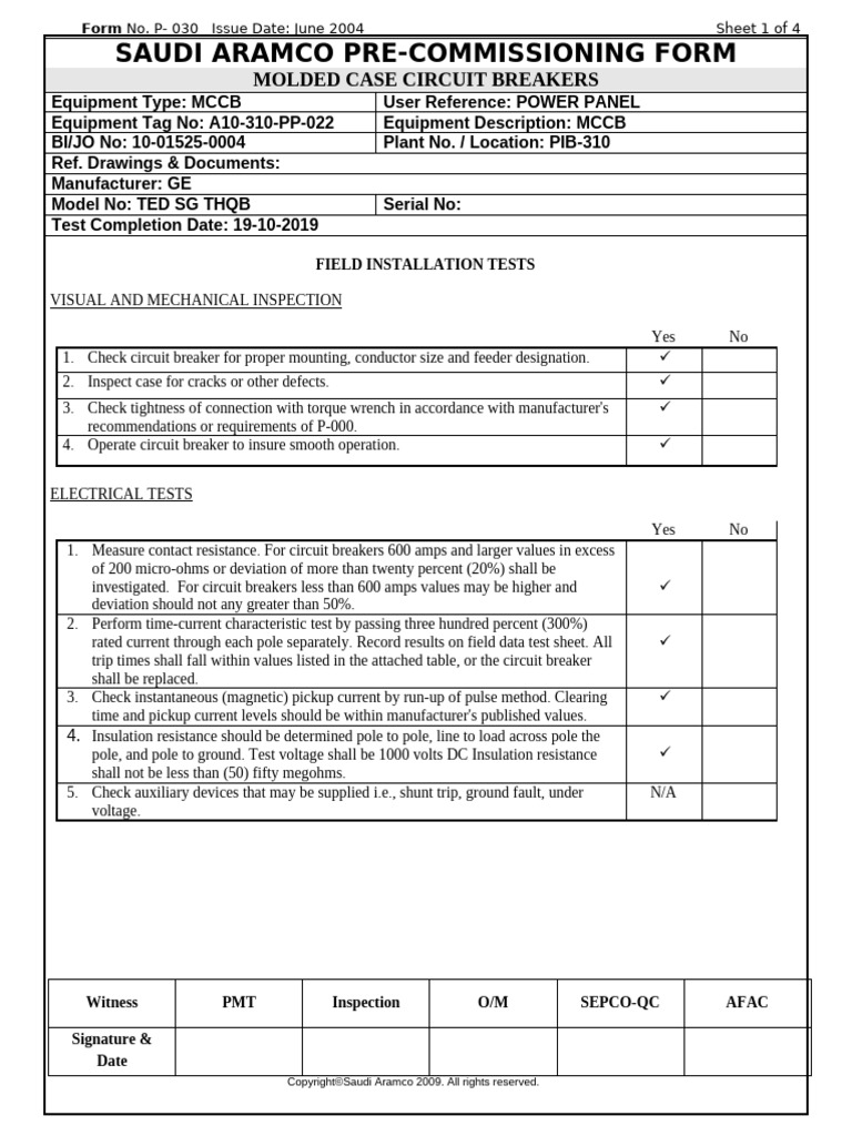 SAUDI ARAMCO PRE-COMMISSIONING FORM
