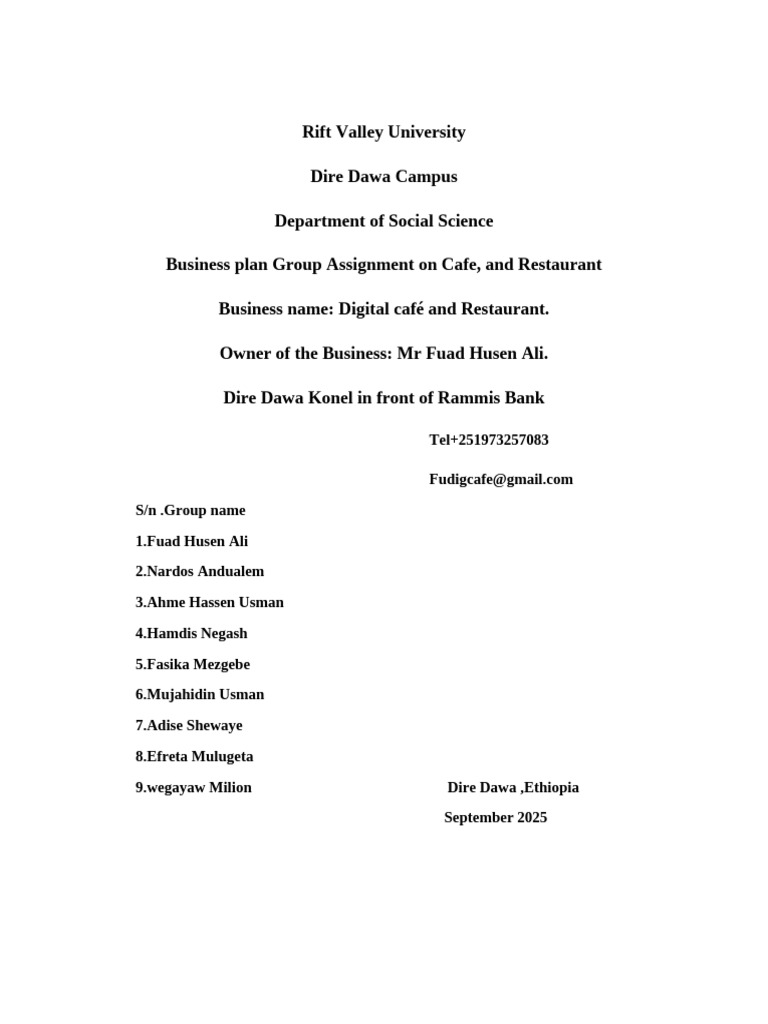 open a café in Dire Dawa city. Digital cafe target customers are intellectuals, artists,