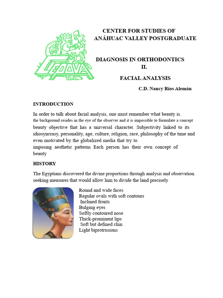 from the face to identify asymmetries and facial disproportion in the three
