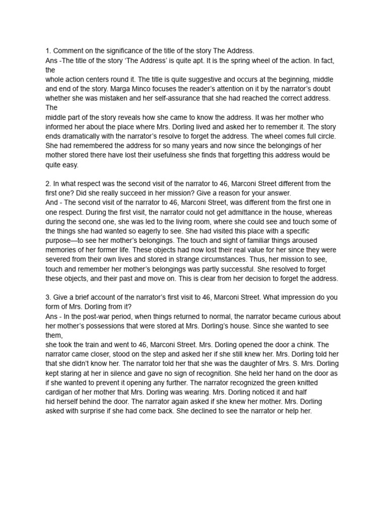 Ans -The title of the story ‘The Address’ is quite apt. It is the spring wheel of the action. In fact,