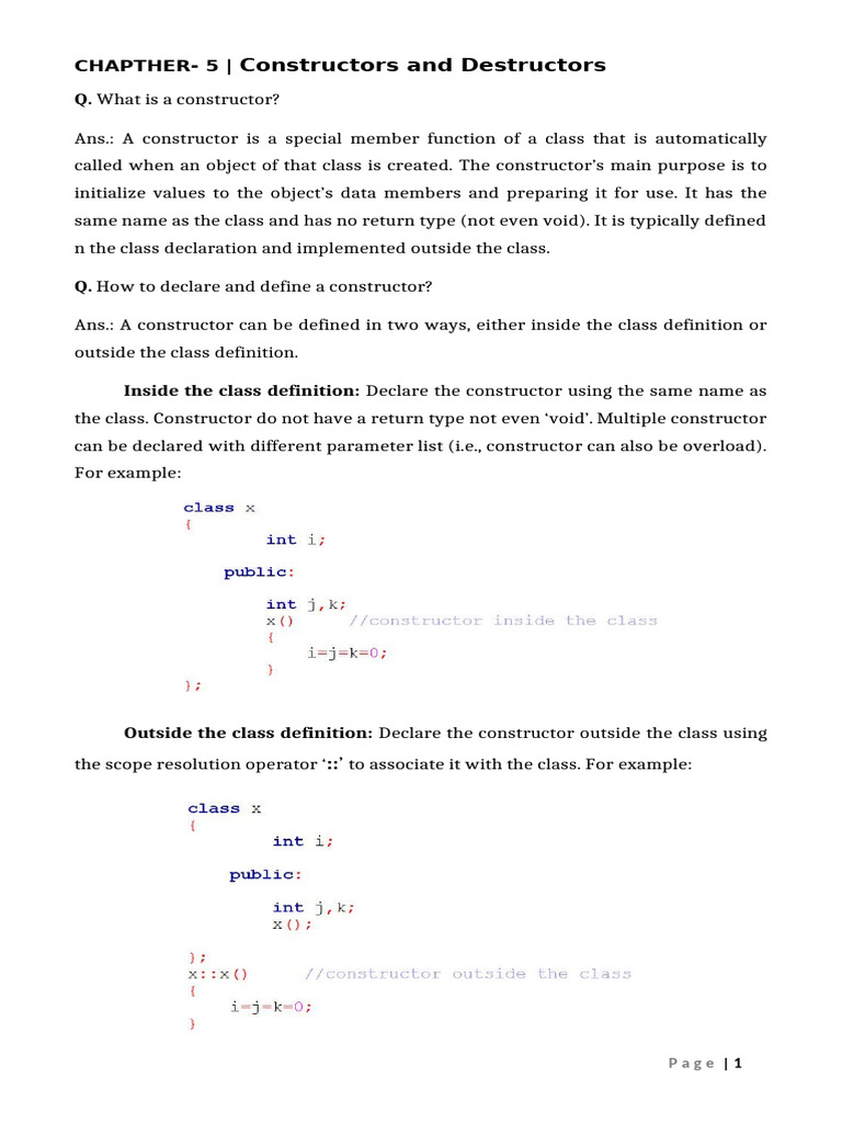 CHAPTHER- 5 | Constructors and Destructors