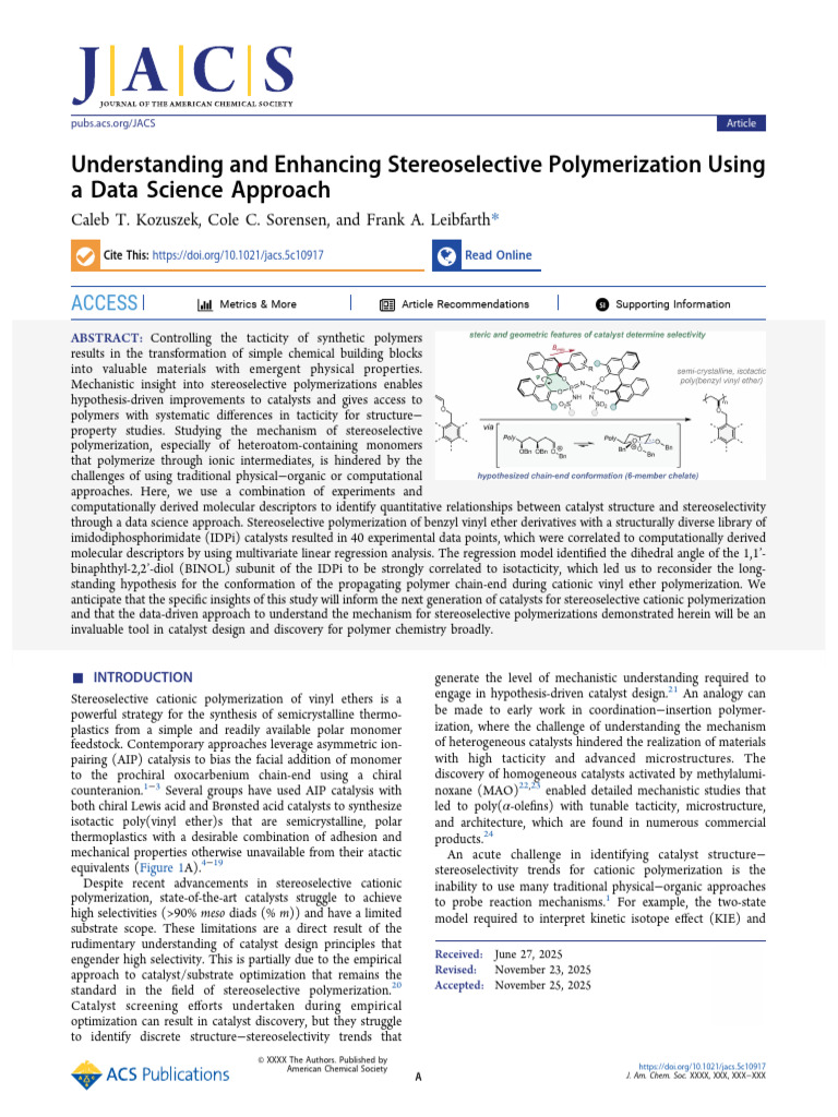 standard in the field of stereoselective polymerization.20 Accepted: November 25, 2025
