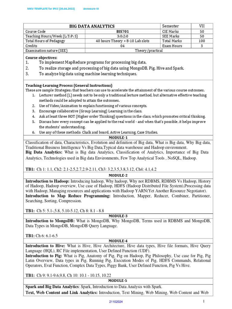 Course Code BCS755C CIE Marks 50