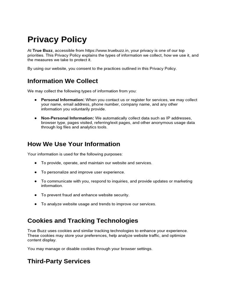 At True Buzz, accessible from https://www.truebuzz.in, your privacy is one of our top