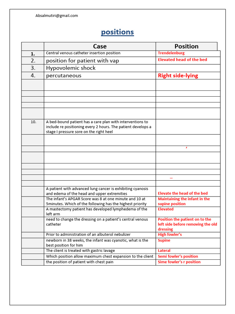 13. Patient with nausea/aspiration what's the position of Lt lateral