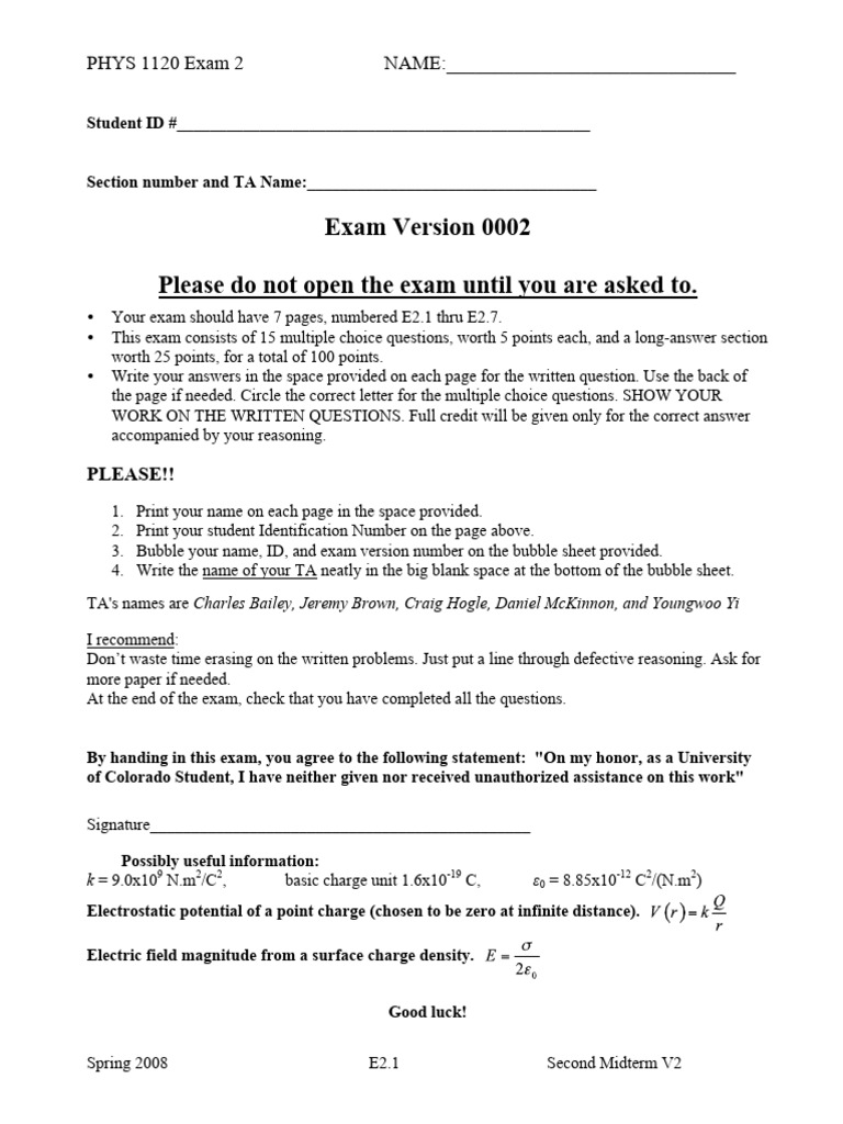 • Your exam should have 7 pages, numbered E2.1 thru E2.7.