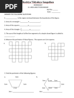 3. Find the perimeter and area of a given shape P, Q, R, S, T, V, U (sketch on grid).
