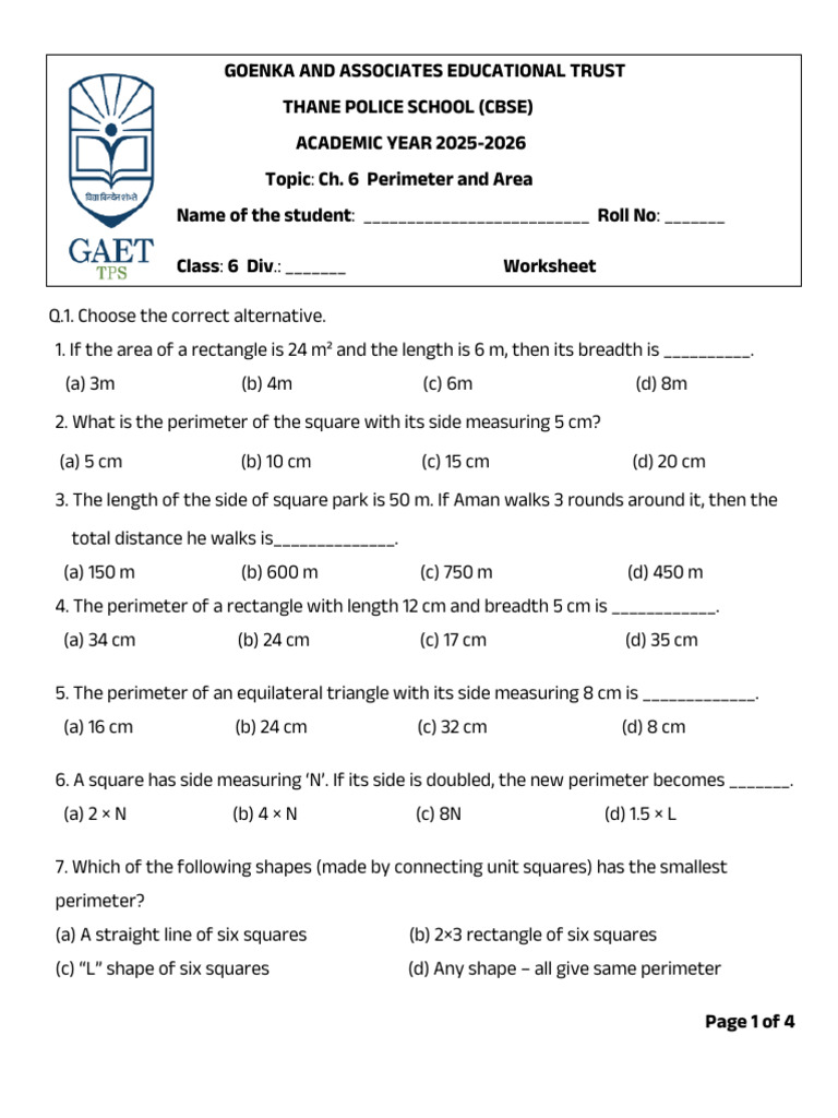 6. A square has side measuring ‘N’. If its side is doubled, the new perimeter becomes _______.