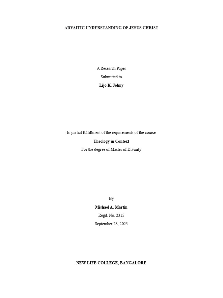 ADVAITIC UNDERSTANDING OF JESUS CHRIST