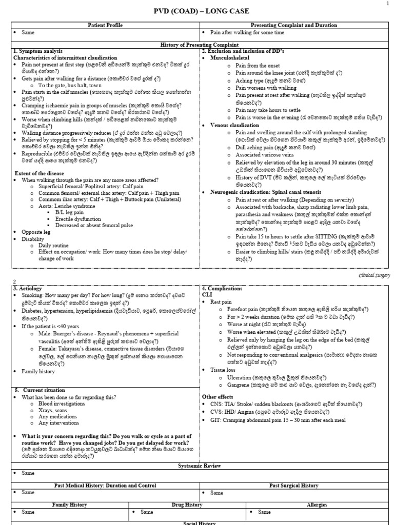 • Gets pain after walking for a distance (ෙකා8චර වෙ: 4ර. ද?) o Aching type (ඇ4D කනව වෙ:)