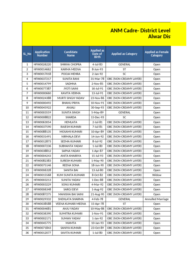 46 HFW0029317 MS SARSWATI 10-Jul-91 OBC (NON-CREAMY LAYER) Open