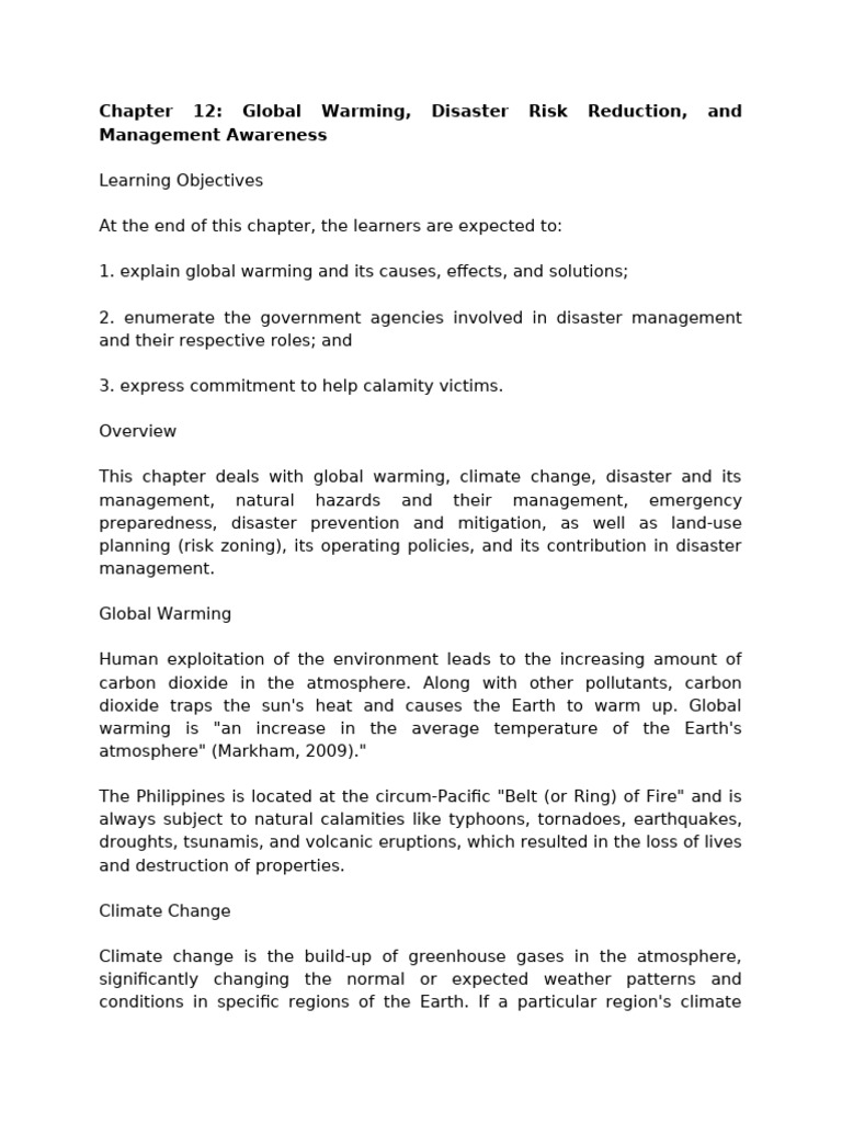 Chapter 12: Global Warming, Disaster Risk Reduction, and