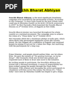 The Swachh Bharat Abhiyan (Clean India Mission) is one Of the most