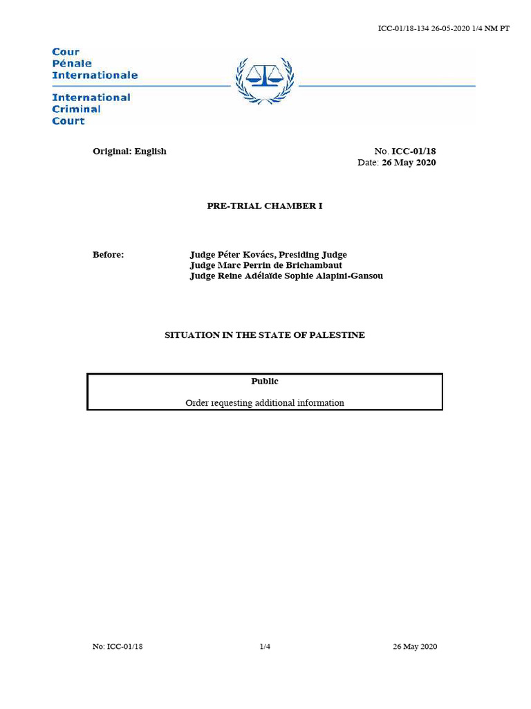 ICC-01/18-134 26-05-2020 1/4 NM PT