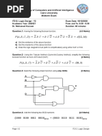 Module 7 Assignment Boolean Algebra and Digital Logic With Multimedia Logic and Powered Breadboards 1Min-terms (Sum-of-Products method) How to develop a circuit from a truth table, using "minterms". a) Write the needed truth table to solve the specific problem. b) On each line where the truth table has a 1 in the output, write the "minterm". c) OR the minterms together to get the final equation. This gives a correct equation for the truth table, but not necessarily the simplest equation. What is a minterm? A minterm is an expression made from the inputs (A, B, C...) or the inverses of the inputs ( A , B , C ) combined with AND. If the input is a 1, use the input; if the input is a 0, use the inverse. Summary of minterms: A 0 0 1 1 B 0 1 0 1 MINTERM Simple Example: A 0 0 1 B 0 1 0 X 0 1 0