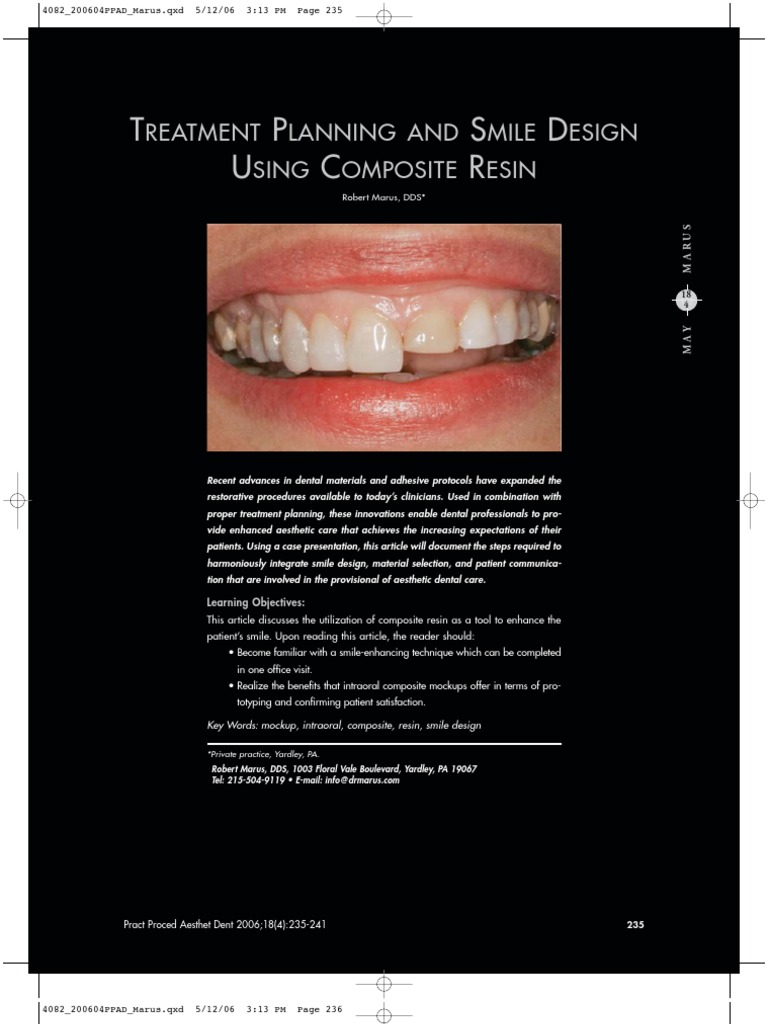 *Private practice, Yardley, PA. Robert Marus, DDS, 1003 Floral Vale Boulevard, Yardley, PA 19067 Tel: 215-504-9119 E-mail: info@drmarus.com