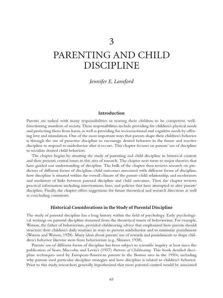 The chapter begins by situating the study of parenting and child discipline in historical context