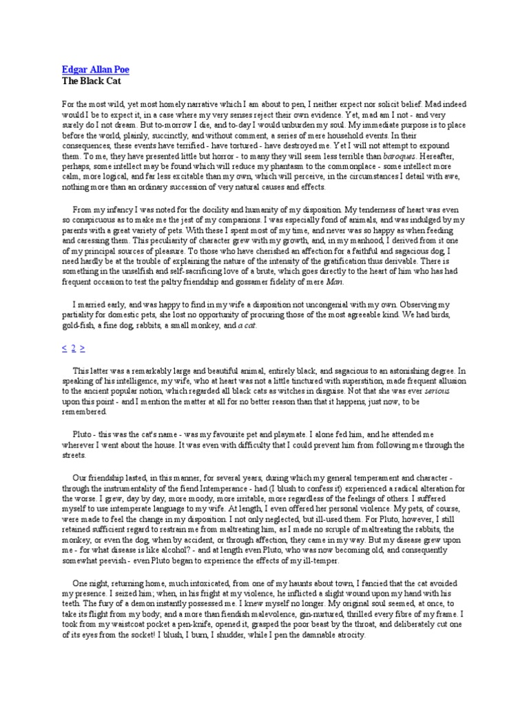 Pluto - this was the cat's name - was my favourite pet and playmate. I alone fed him, and he attended me