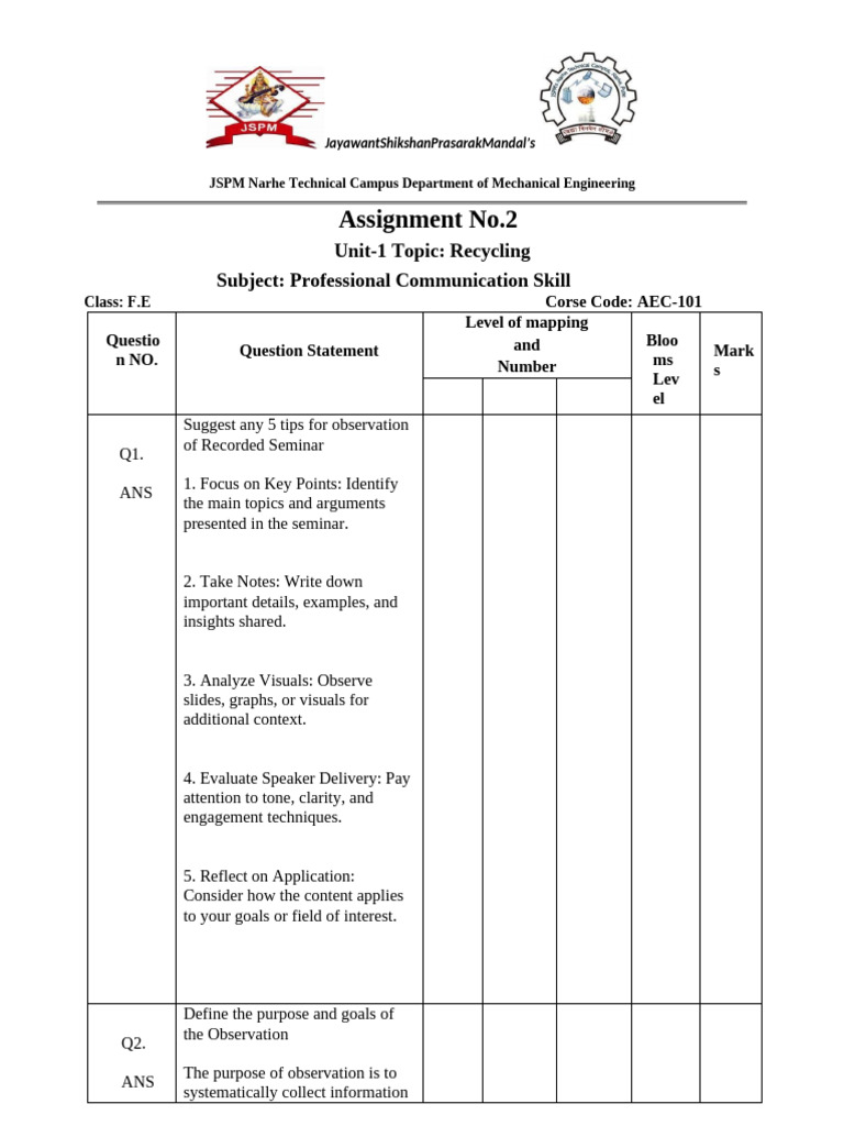 JSPM Narhe Technical Campus Department of Mechanical Engineering