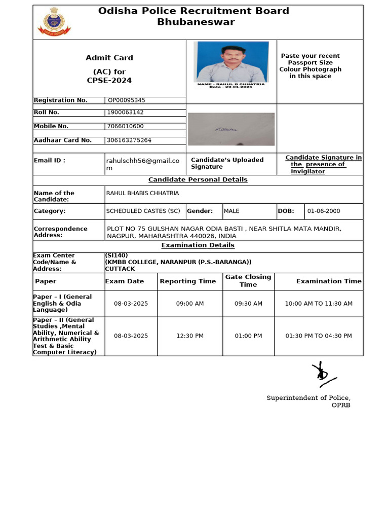 and its photocopy. On the copy of Identity proof, the candidates should write his/her Roll No. on the top and