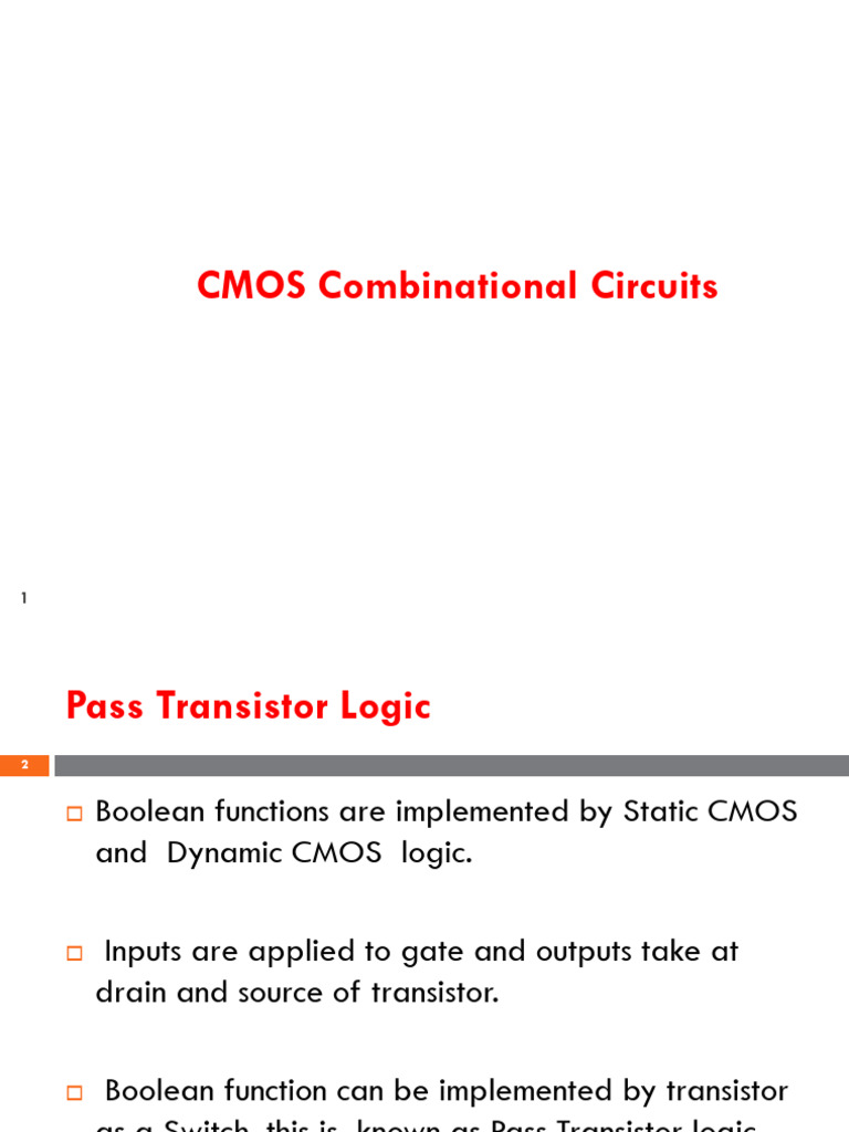 Advantages of Pass Transistor Disadvantages of Pass Transistor