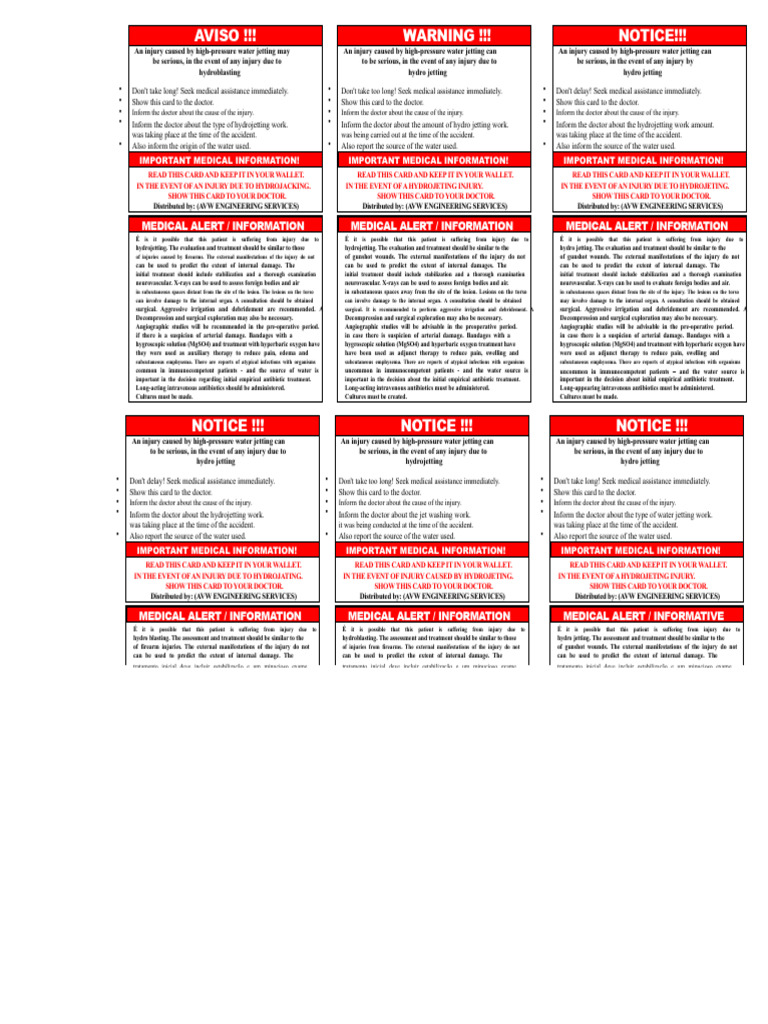 IN THE EVENT OF AN INJURY DUE TO HYDROJATING. IN THE EVENT OF INJURY CAUSED BY HYDROJETING. IN THE EVENT OF A HYDROJETING INJURY.