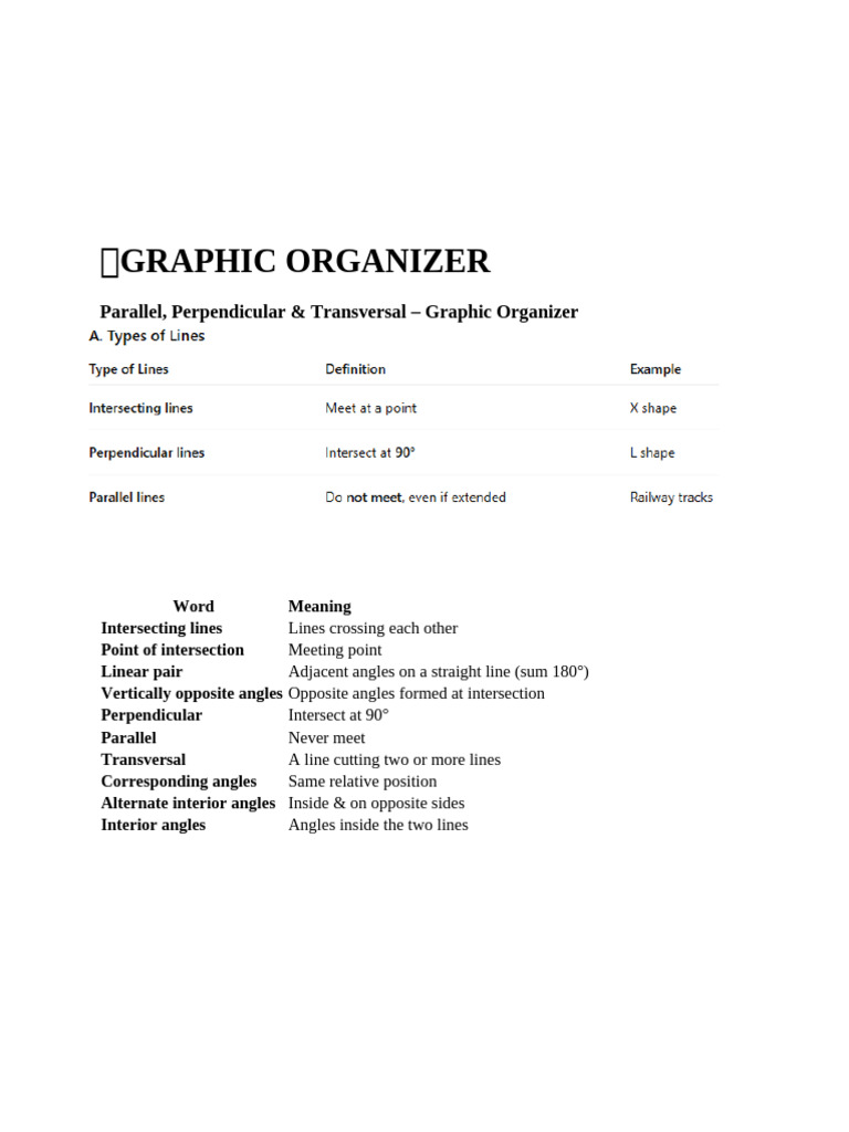 Parallel, Perpendicular & Transversal – Graphic Organizer